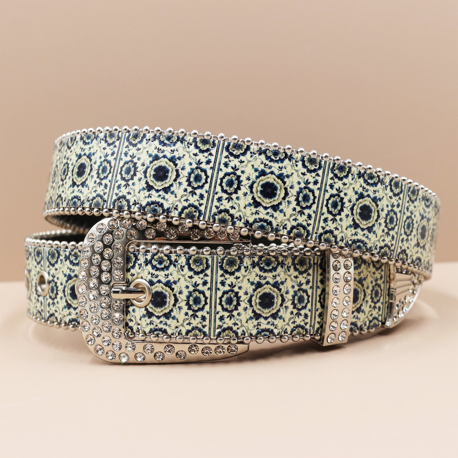 Vintage Print Punk Belt - A Versatile Rhinestone Accessory for Alt-Fashion YD004-1